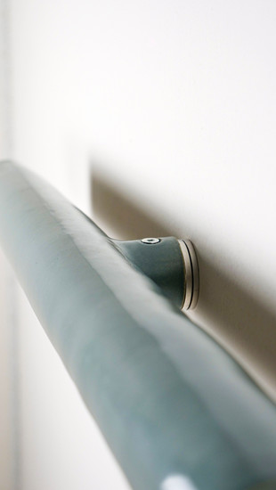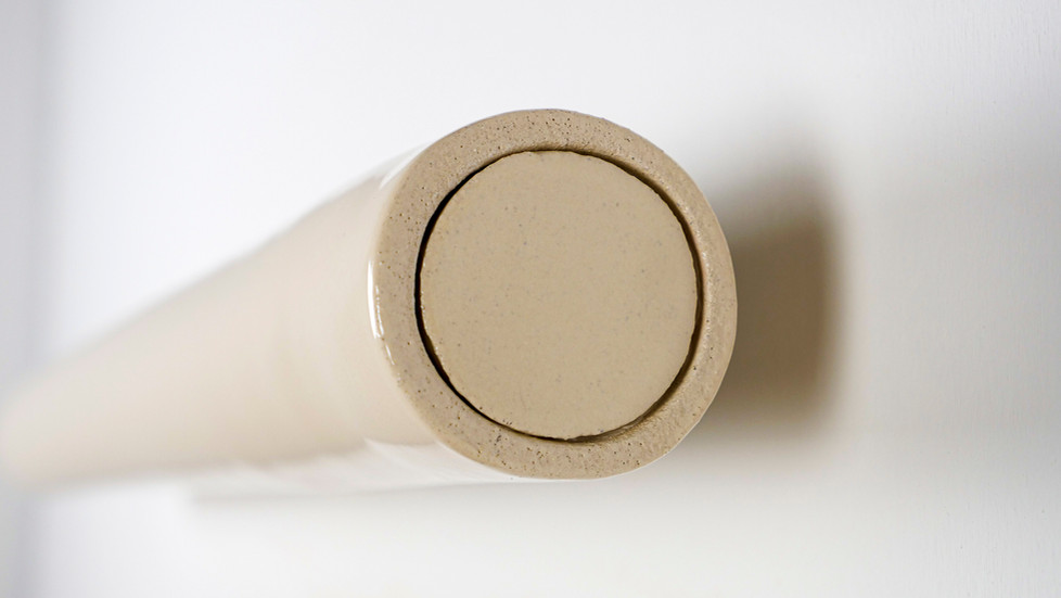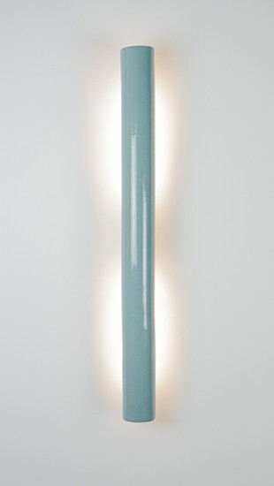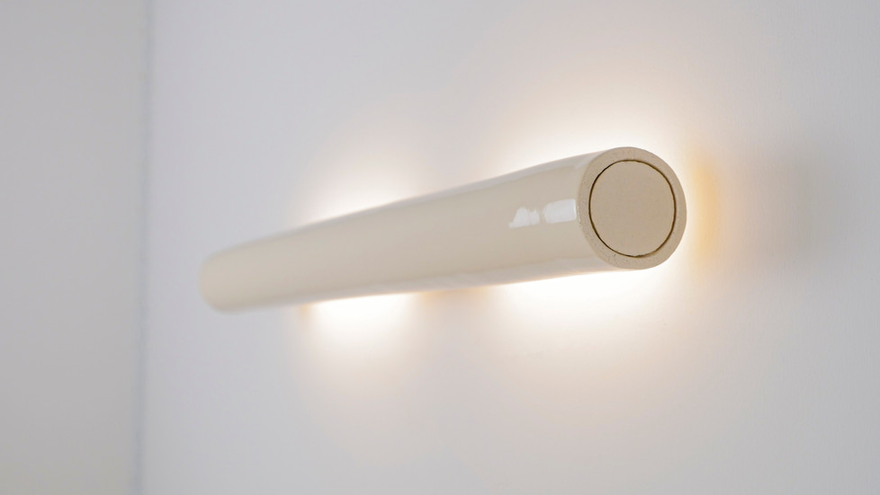 After visiting Stylnove, the designer is inspired by the extrusion machine. She therefore chooses to use it in the project, without working with a mould but exploiting the potential of a continuous silhouette that comes out of the machine and can later be processed to add functionality. The result is a collection of cylindrical extrusions that can be wall-mounted either vertically or horizontally and function as sculptural elements of indirect outdoor LED lighting. ‘The texture of the material is something very tactile and the different glazes bring out the properties of the material hidden inside. A warm glow bounces off the wall from behind the minimal monolithic volumes'.
